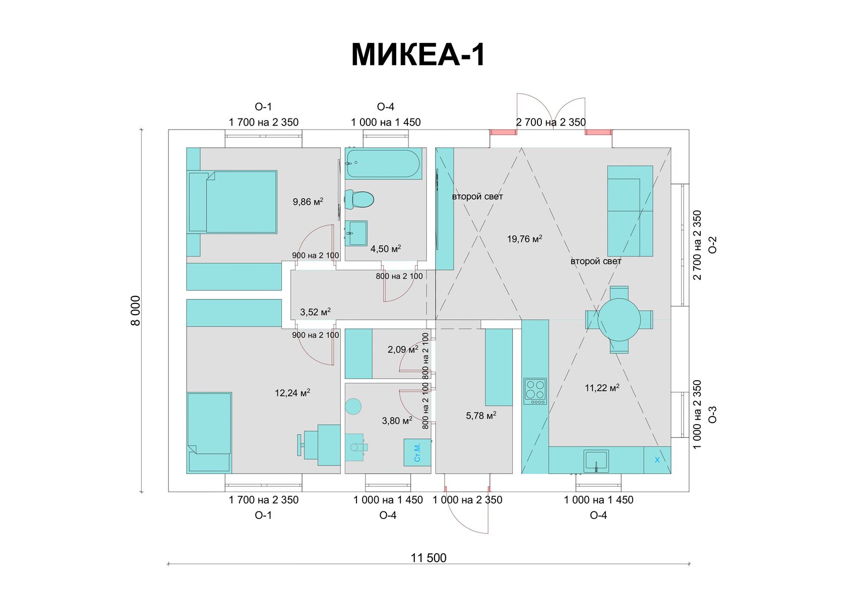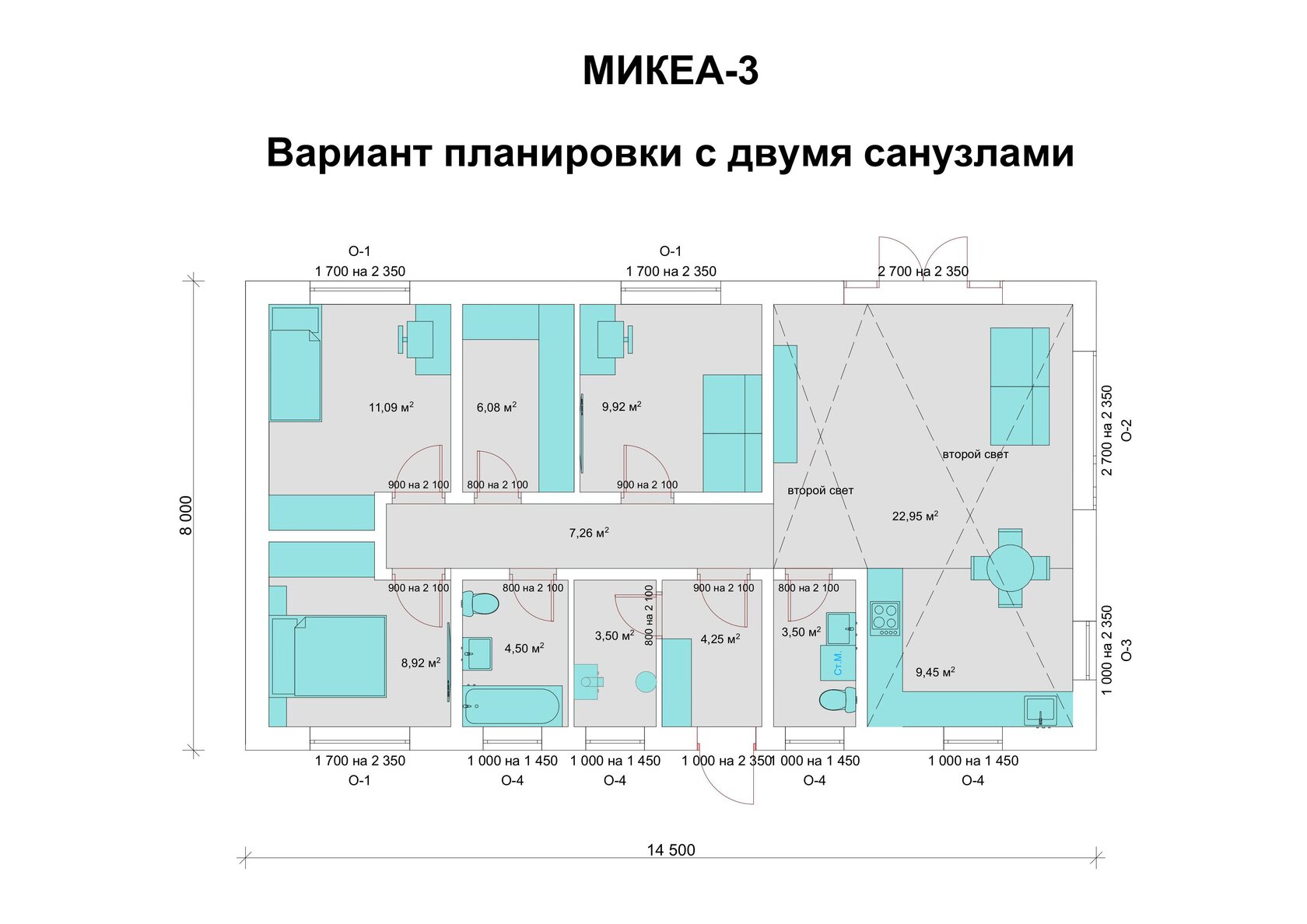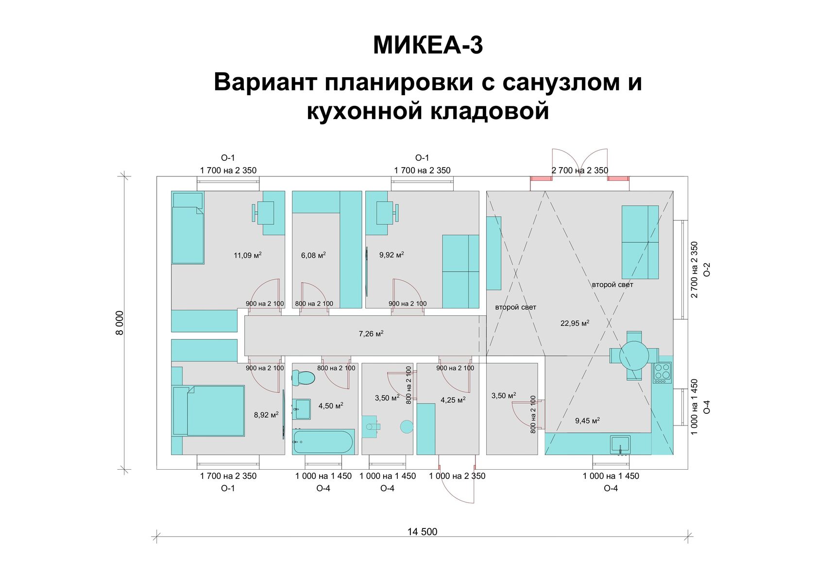 Типовая планировка включает в себя размещение всех необходимых помещений, а также дизайн всех комнат.